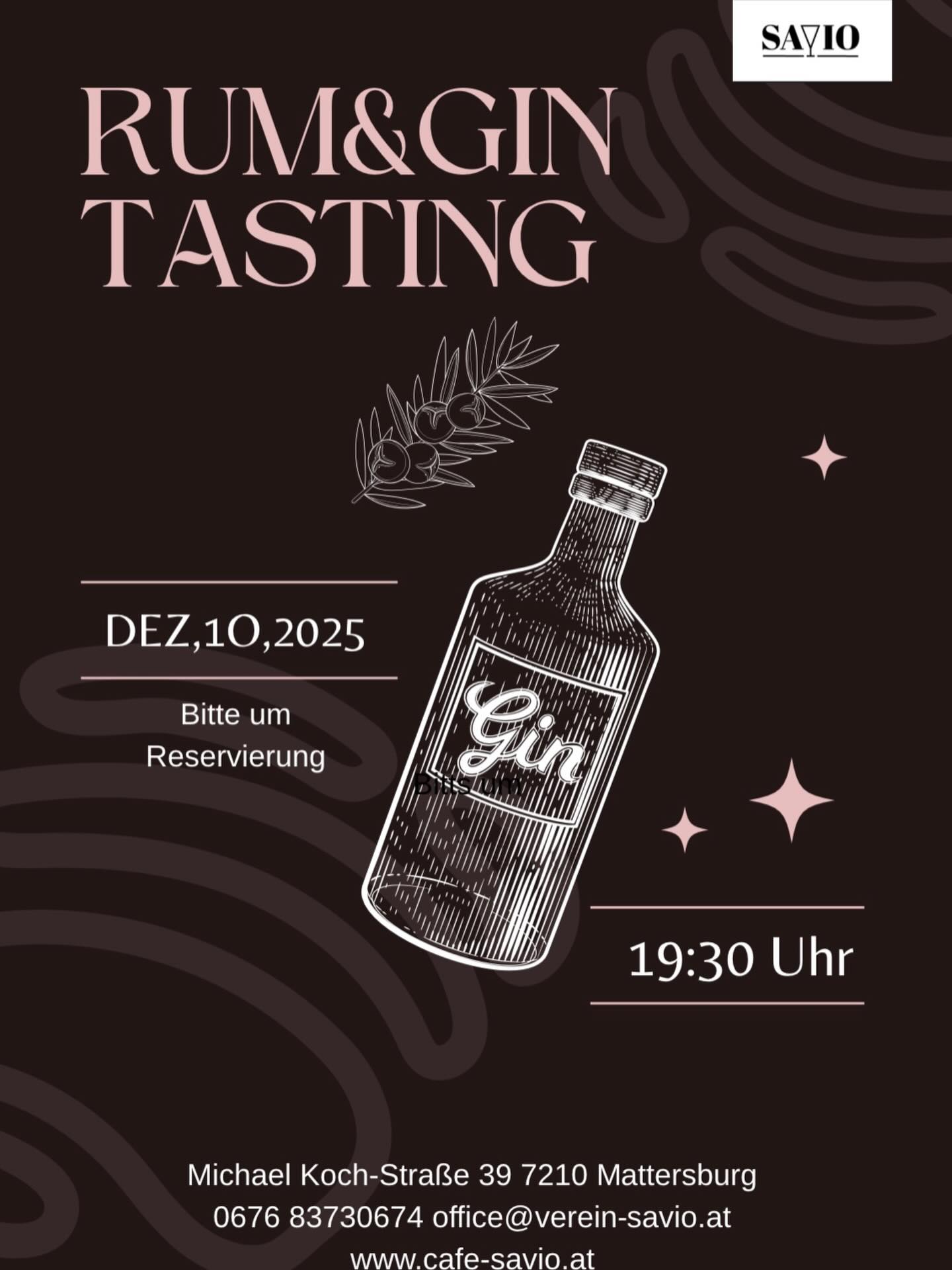 SAVIO TASTING SESSION – Rum & Gin 10.12.2025 / 19:30