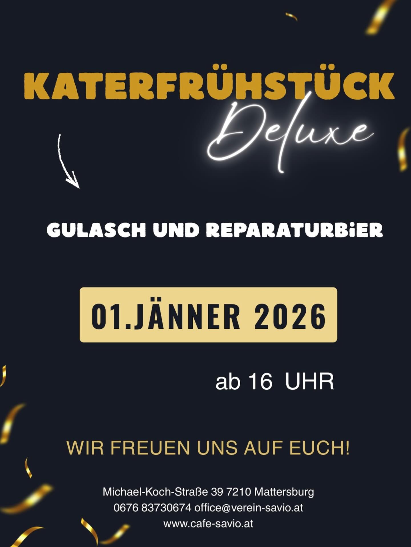 KATERFRÜHSTÜCK DELUXE / 01.01. AB 16:00 UHR X Gulasch & Reparaturbier